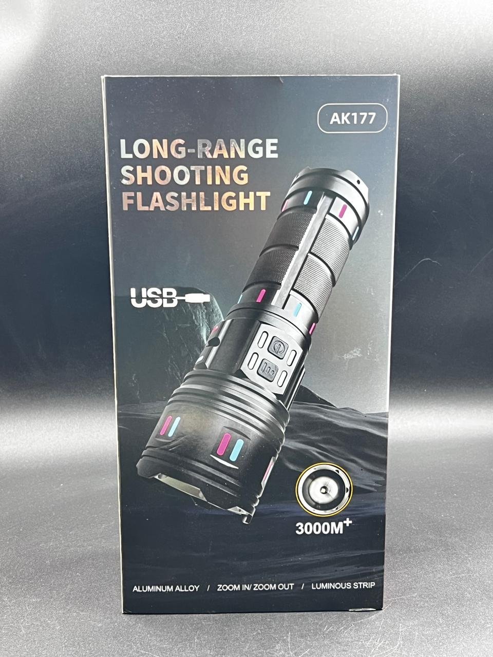 “Bu uzun məsafəyə işıq verən AK177 model əl fənəri, yüksək keyfiyyətli alüminium ərintisindən hazırlanmış, güclü və davamlı bir işıq mənbəyidir. USB ilə doldurula bilən bu fənər, 3000 metrə qədər işıq yayır və uzaq məsafələrdə belə mükəmməl işıqlandırma təmin edir. Zoom in/zoom out funksiyası ilə istifadəçilər işığın bucağını asanlıqla tənzimləyərək, istədikləri ərazini daha yaxşı işıqlandıra bilərlər.