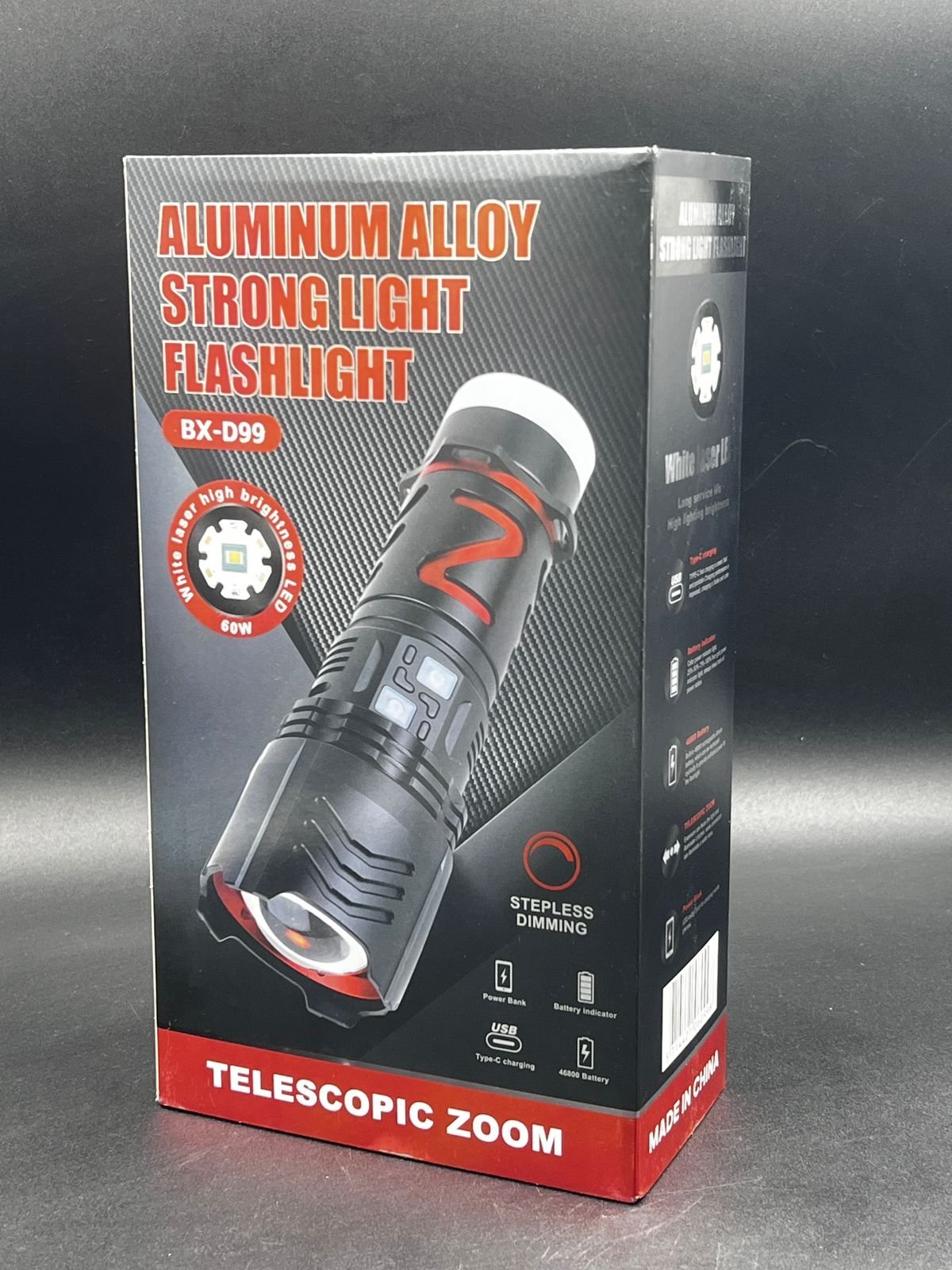 “BX-D99 model güclü işıqlandırma əl fənəri, uzun məsafələrə işıq yayıb, aydın və intensiv işıq təmin etmək üçün nəzərdə tutulmuş yüksək keyfiyyətli bir cihazdır. Alüminium ərintisindən hazırlanmış bu fənər, dayanıqlı və yüngül dizaynı ilə həm gündəlik istifadə, həm də açıq hava fəaliyyətləri üçün idealdır. Fənərin teleskopik zoom funksiyası, işıq şüasının intensivliyini tənzimləməyə imkan verir, bu da müxtəlif mühitlərdə ən yaxşı işıqlandırmanı əldə etməyə kömək edir.