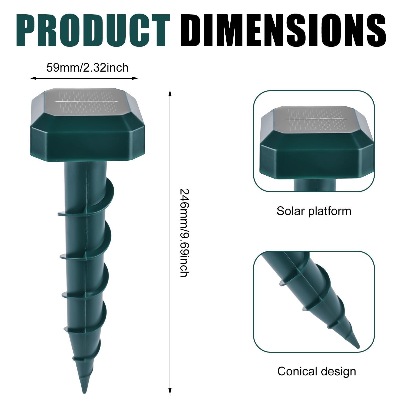 Bu günlərdə təbii yolla bağçanızı qorumaq və heyvanları uzaqlaşdırmaq istəyirsinizsə, bu günəş enerjili siçovul və digər kiçik heyvanları uzaqlaşdıran cihazlar mükəmməl həll olacaq. Bu məhsul, həm də etibarlı və ekoloji cəhətdən təmiz bir yanaşma təklif edir. Günəş enerjisi ilə işləyən cihaz, yerə asanlıqla basdırıla bilər və dərin kökləri olan kiçik heyvanların bağçanızda rahatlıqla gəzməsinin qarşısını alır. Üçlü şəkildə çalışır: siçovullar və digər məməlilər bu səs dalğalarından qaçaraq, özlərini təhlükəsiz hiss etmirlər.