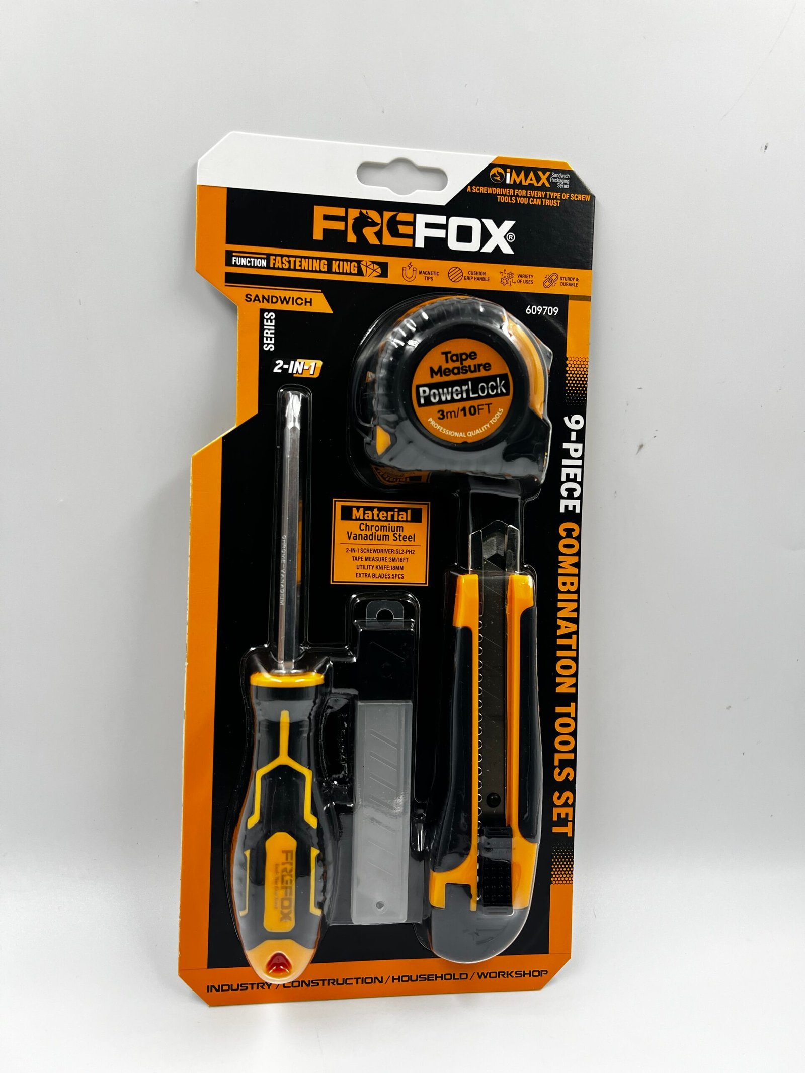 FREFox 4in1 parça Kombinasiya Alətləri Dəsti ilə işlərinizin keyfiyyətini artırın! Yüksək keyfiyyətli materiallardan hazırlanmış bu alətlər, xüsusən inşaat, ev bəzəmə və qaraj işləri üçün ideal seçimdir. Dəstdə 3m/10ft PowerLock lent ölçüsü, təhlükəsiz və rahat istifadə üçün xüsusi dizayn edilmiş alətlər və çoxsaylı funksiyalar mövcuddur. Alətlər, yüksək möhkəmliyi və davamlılığı təmin edən xrom vanadyum poladından hazırlanıb. Bütün alətlər, rahatlıqla saxlana bilən bir qablaşdırmada təqdim edilir və hər biri uzun müddət istifadə üçün nəzərdə tutulub. Evinizi təmir etmək və layihələrinizi daha asan və sürətli həyata keçirmək istəyirsinizsə, bu alətlər dəsti sizin üçün mükəmməl seçimdir.