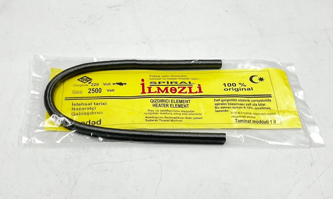İlməzli peç spiralı, 220V gərginliklə çalışan və 2500W gücündə olan yüksək keyfiyyətli bir istilik elementidir. Hər növ elektrikli soba, qaz sobası və digər istilik cihazları üçün ideal olan bu spiral, orijinal keyfiyyəti ilə uzun ömürlü və etibarlı bir istifadə təklif edir. 100% orijinal olaraq təqdim olunan məhsul, zərif gərginlikli elektrik dövrələrində istifadə edilərkən, zamanla spiralın 8-10%-ni yeniləmək lazım gəlir. İlməzli spiralı, istilik tətbiq etdiyiniz cihazın performansını artırır və səmərəliliyini yüksəldir.