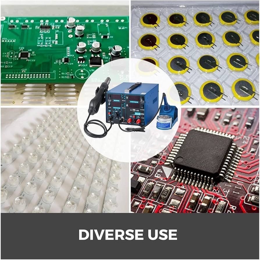 Yihua 853D modeli ana plata təmiri, mikrosxemlərin sökülməsi və quraşdırılması, mobil telefon, noutbuk və digər elektron avadanlıqların servis işləri üçün geniş istifadə olunur. Güclü fan sistemi isti havanın bərabər paylanmasını təmin edir, payalnik hissəsi isə stabil istiliklə rahat lehimləmə imkanı yaradır.